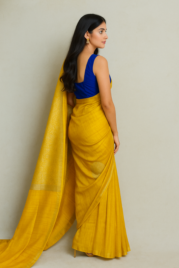 Handcrafted by master weavers, this saree features delicate zari patterns woven with enduring skill flowing effortlessly to honour House of Dharmani’s heritage of subtle elegance and heirloom craftsmanship.